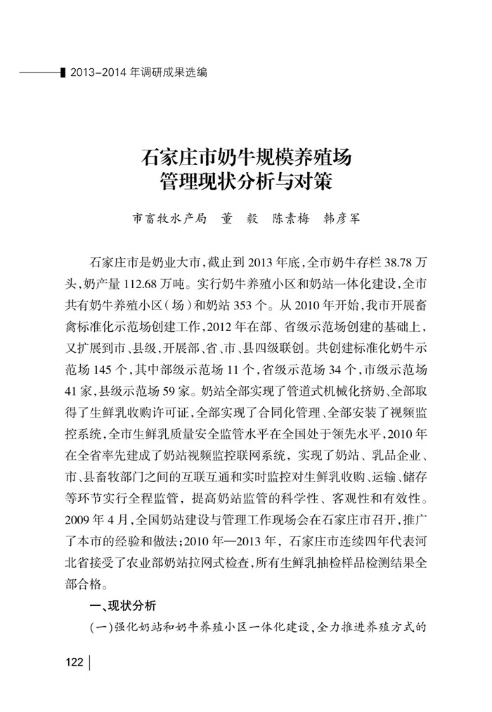 石家庄市奶牛规模养殖场管理现状分析与对策