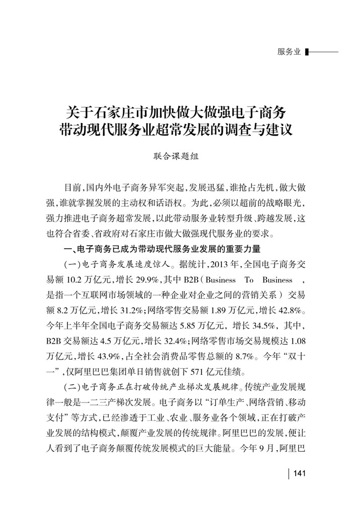 关于石家庄市加快做大做强电子商务 带动现代服务业超常发展的调查与建议