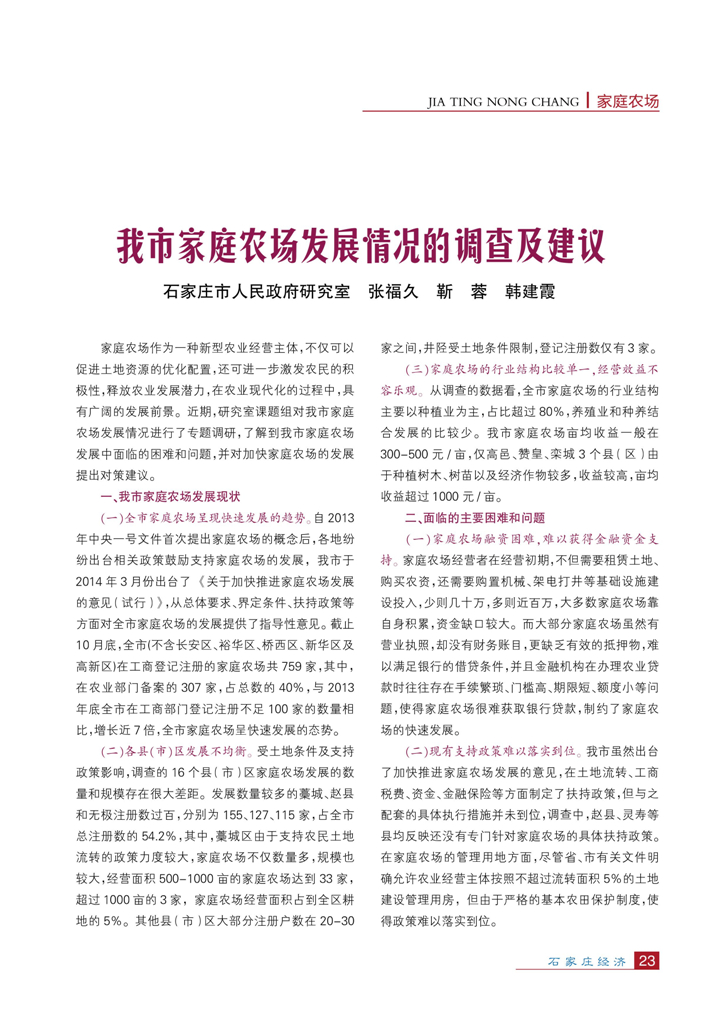 《石家庄经济2015-1》P23-24 我市家庭农场发展情况的调查及建议