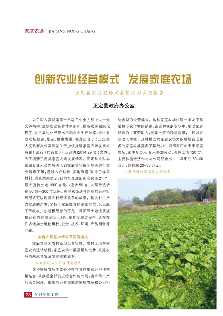 《石家庄经济2015-1》P28-30 创新农业经营模式 发展家庭农场 ——正定县家庭农场发展情况的调查报告