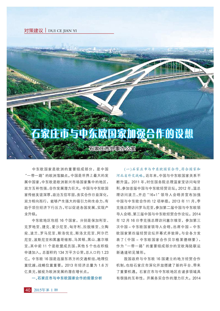 《石家庄经济2015-1》P40-42 石家庄市与中东欧国家加强合作的设想